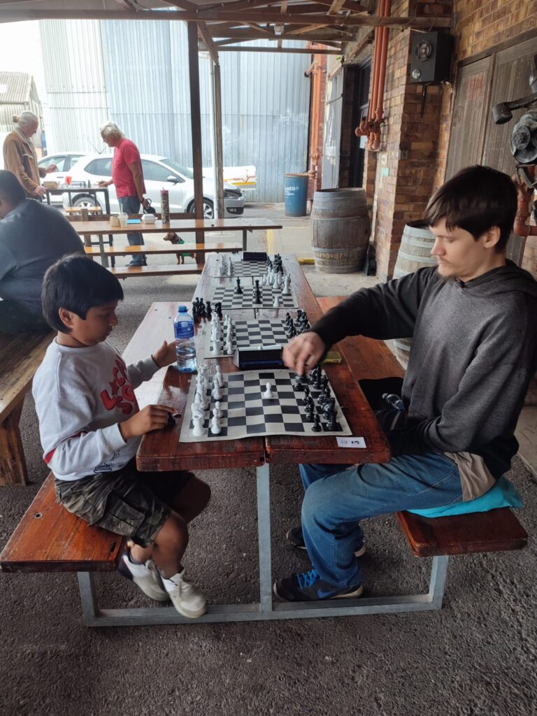 Market vendors were amazed at the sudden surge of visitors. Families who came for a casual stroll found themselves caught up in the excitement, many lingering to watch or join in. Our Helderberg chess crew proved that the game is very much alive in the area—so much so that plenty of newcomers signed up for future club events on the spot.